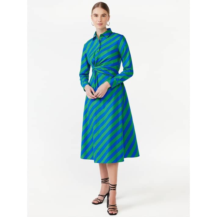 Scoop Women S Side Knot Poplin Midi Shirt Dress With Long Sleeves Sizes Xs Xxl Walmart Com